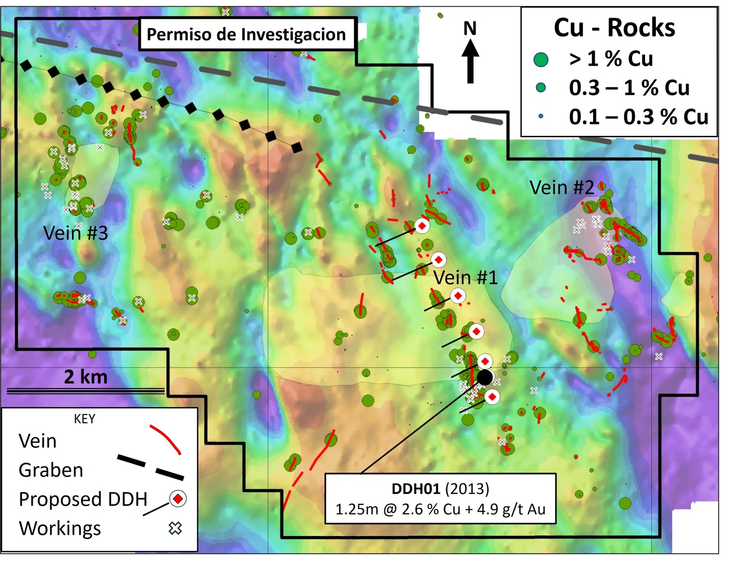 • Known targets: High grade Cu-Au veins to yield a 100,000+ oz AuEq Inferred resource